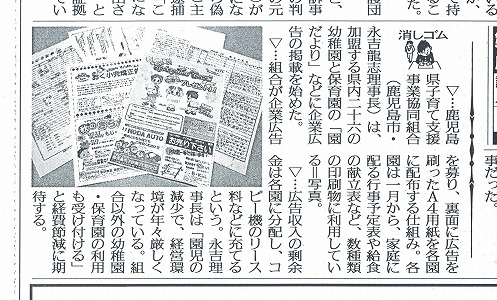 平成21年2月1日付の南日本新聞に、組合の広告事業に関しての記事が掲載されました。 |