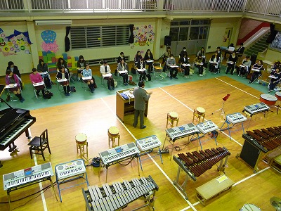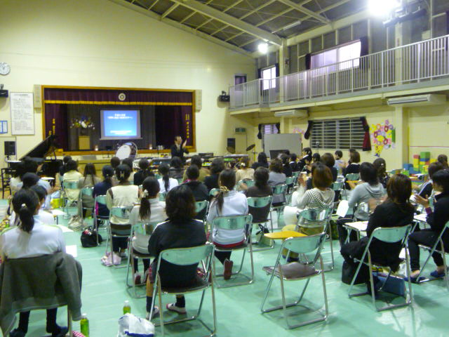 平成23年3月25日(金)に田上幼稚園の体育館ホールにて音楽セミナーが実施されました。 阿部郁樹先生(国立音楽大学出身)が講師となり、約40名の先生方が受講されました。